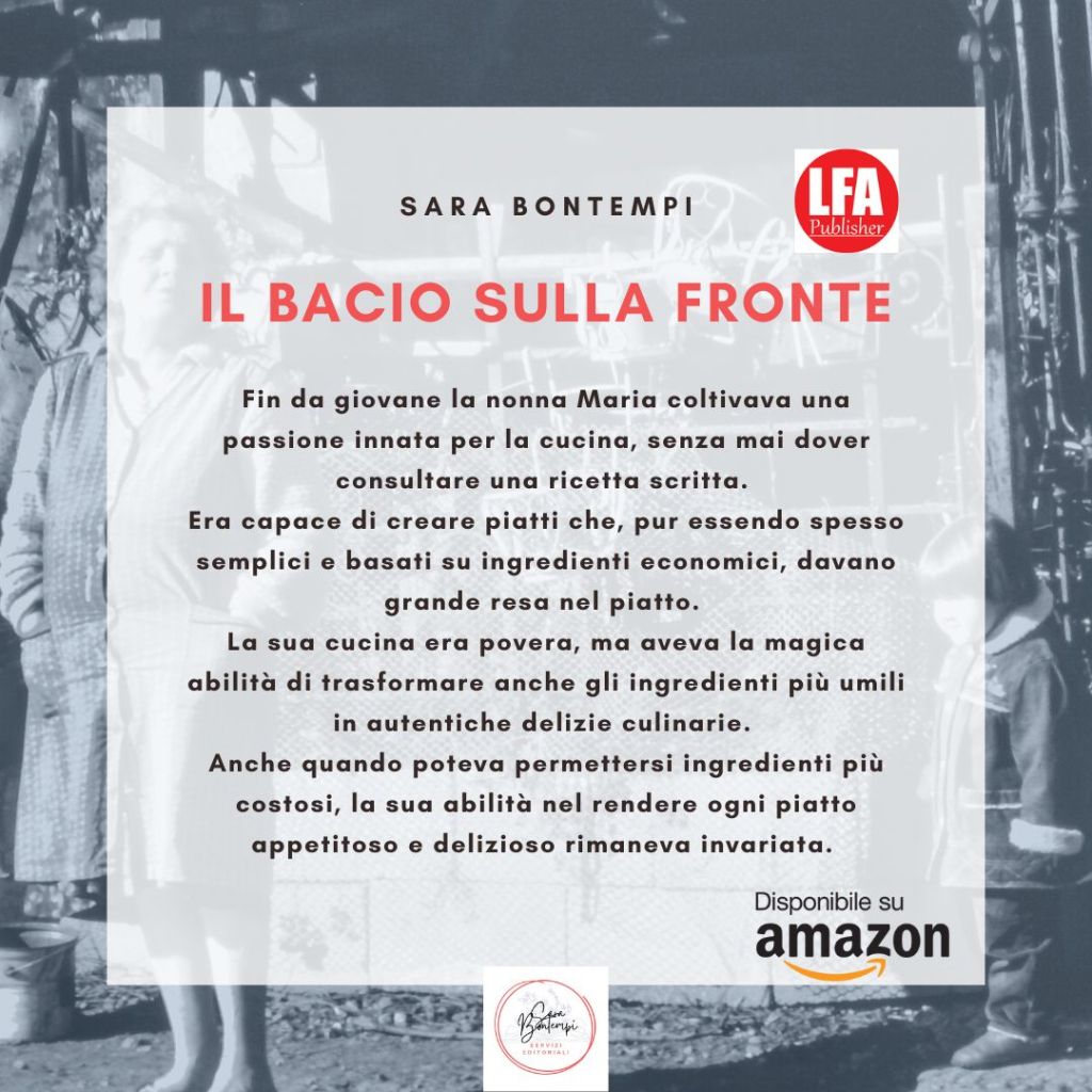 “Il bacio sulla fronte” (LFA Publisher 2023) è il suo primo romanzo, scritto con il cuore e i bei ricordi dei tempi andati.